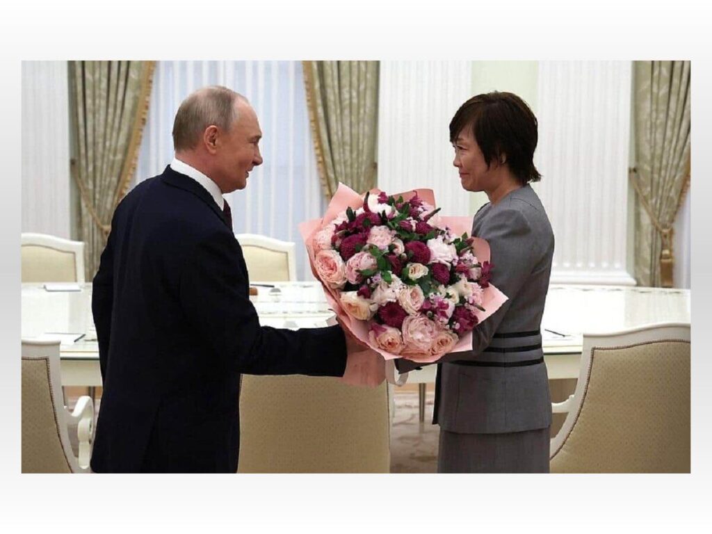 現地の国営メディアも即座に報じて、ニュース映像では、プーチン大統領が昭恵さんに花束を手渡す姿がしっかり映ってました。
