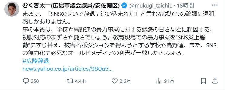 報道や学校側の説明に対し、「本質をすり替えている」とズバリ切り込むその言葉は、多くの人に共有され、賛同の声が相次ぎました。