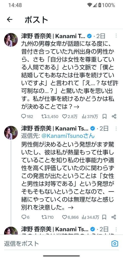 発端は「九州と男尊女卑を結びつけた」とされる投稿。